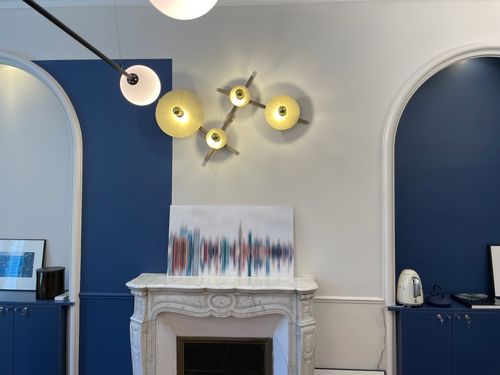 Les espaces neutres sont subtilement animés par des aplats de couleurs, créant un contraste saisissant avec la structure haussmannienne, ce qui donne vie et personnalité aux lieux.